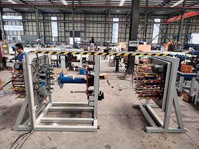 1.編織碳纖維和玻璃纖維。2.2套設備均帶4錠纏繞 纏繞紗為碳纖和玻纖外放紗,紗線紙筒內徑75mm、高度280mm 直徑200mm 3.纏繞機的中心內孔做大于Ø120mm。4.為保證碳纖不打扭纏繞用被動形式放線帶張力剎車。130復材專用 錠子。紗管65*210。5.纏繞機要有浸膠裝置(沾膠加膠槽)。每套編織機帶。一個膠桶,形狀為方口深100mm、下面是漏斗狀深100mm,底部出口加個100mm長度的圓管。膠桶帶20mm翻直邊,帶個膠桶放置架。 6. 380V 三相 變頻器用易能變頻器,注:撥盤使用帶軸承的。7.控制柜、電器為碳纖專用防爆柜,編織、纏繞速度控制為電位器,加數字顯示 (有顯示纏繞轉速的表)8.配2套模芯固定裝置(簡易模芯固定架) 。9.帶撐線圈 撐線圈外徑小于編織軌道內圈100MM 高度可調。